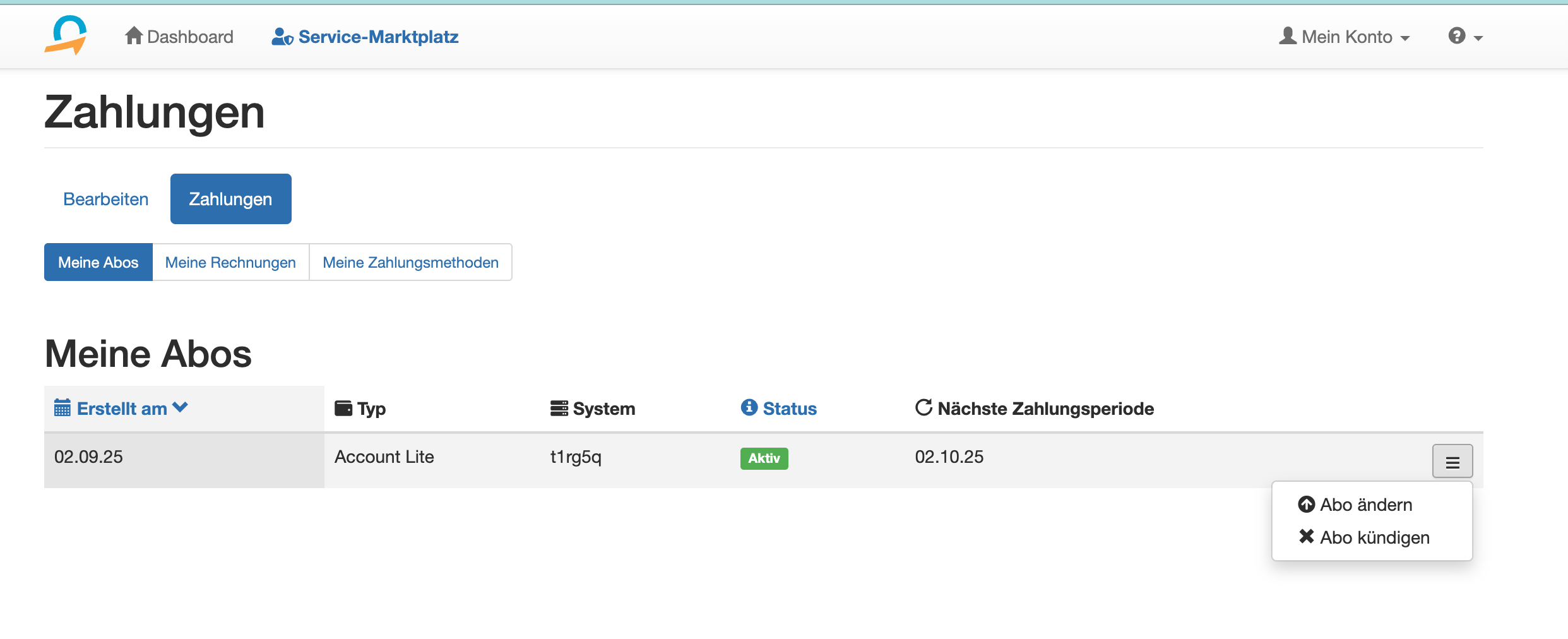 - Klicke rechts neben deinem Abo auf das Symbol mit den 3 Strichen.