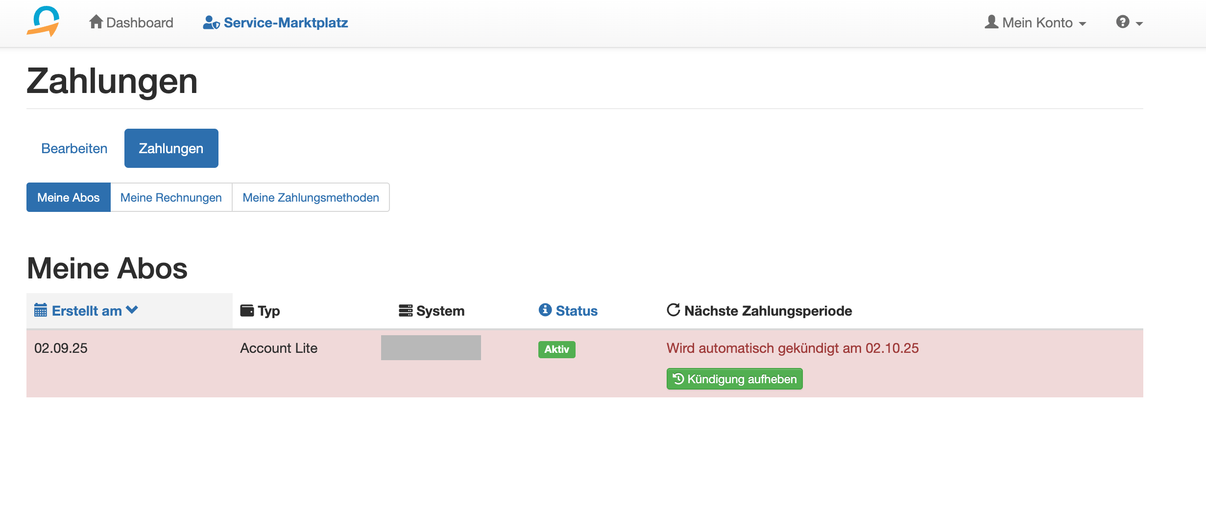 "Abo kündigen" ist ausgegraut