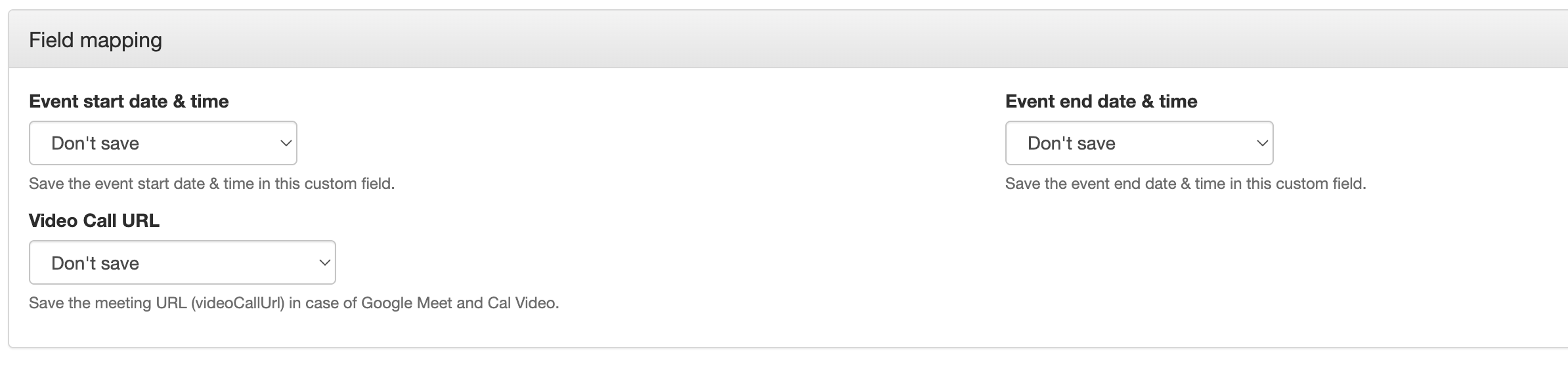 You can now map additional fields (optional). You can pass the start and end date/time of the meeting as well as the video call URL.