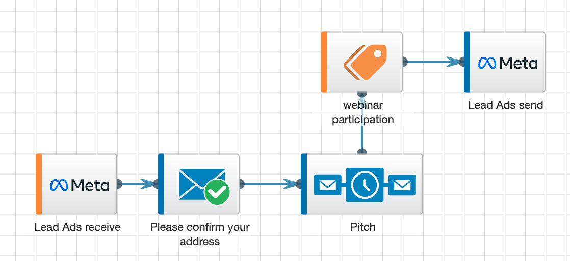 You receive Lead Ads and let them complete the double opt-in in Quentn. In the sequence that follows, you pitch your offer — in our example, the goal is to convince people to attend a webinar.