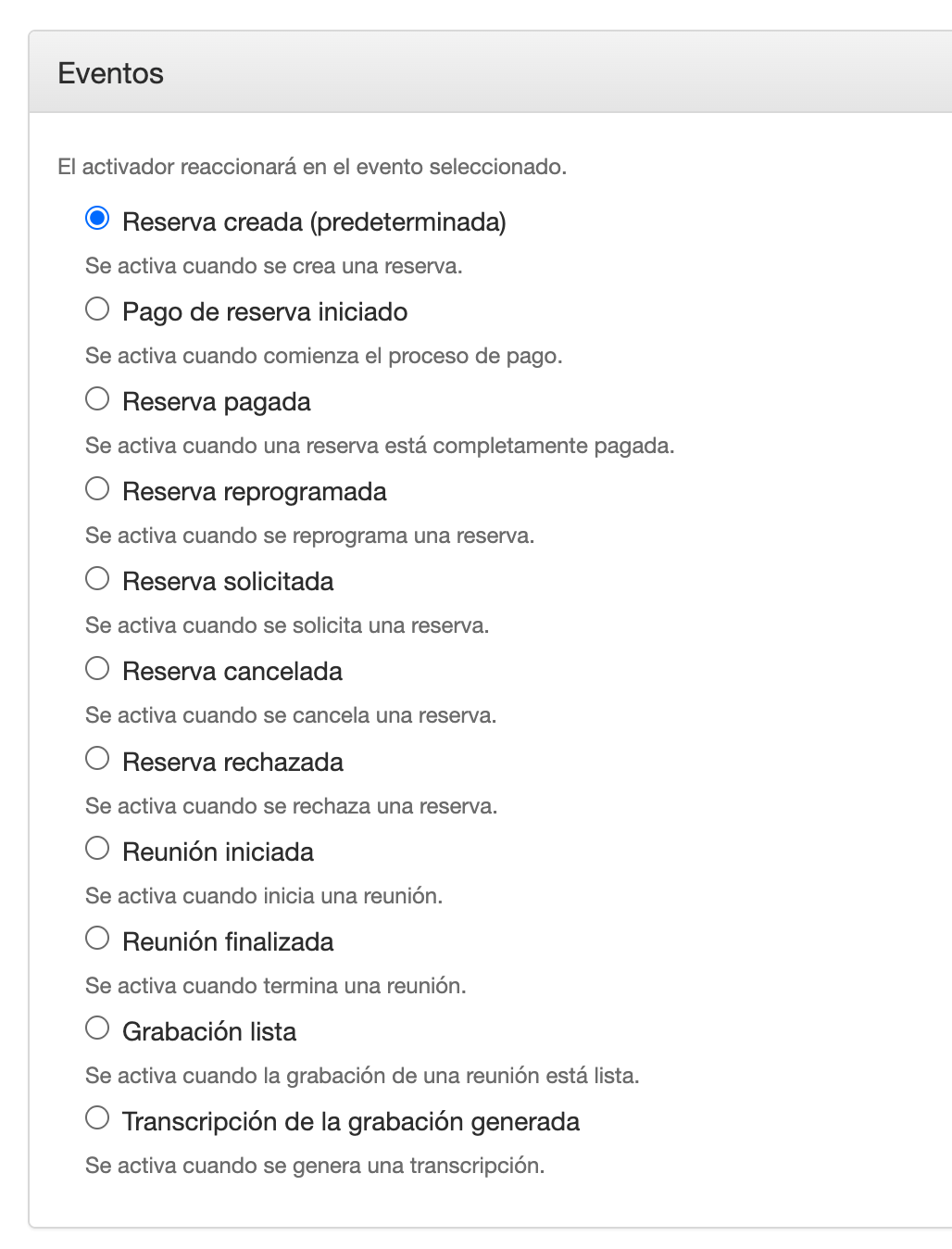 Reserva creada (predeterminada)