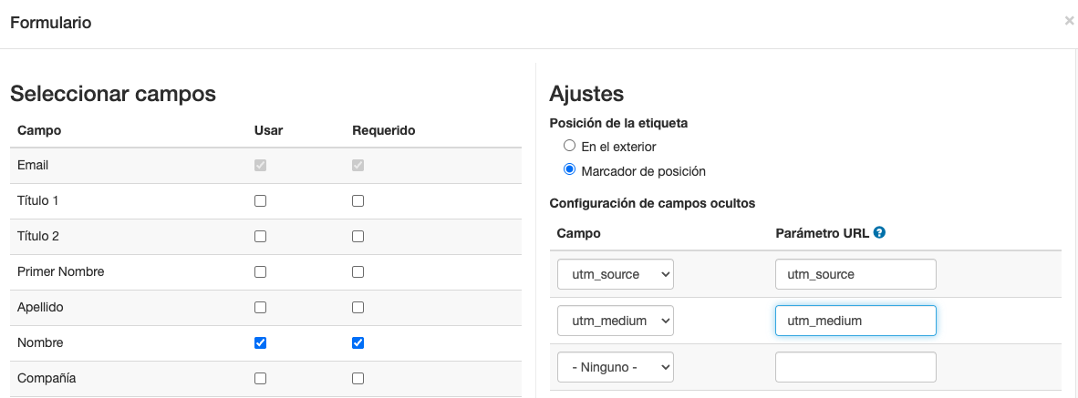 Por ejemplo, si tus campos de contacto se llaman utm_source y utm_medium, el enlace podría verse así: