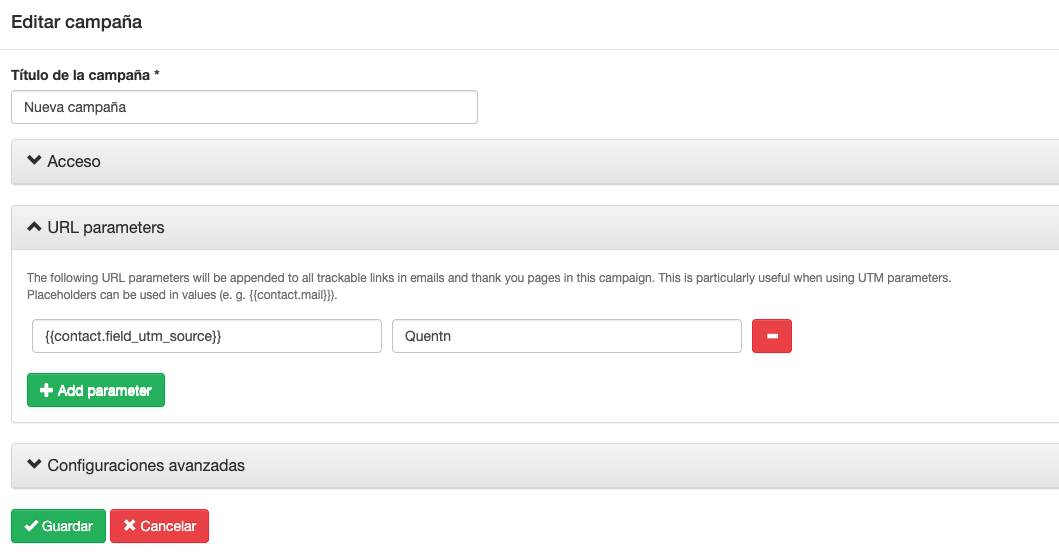 A partir de una cuenta Pro, puedes definir un parámetro en la configuración de la campaña.